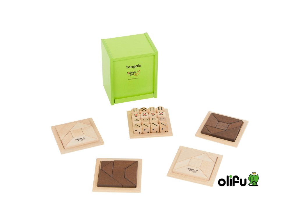 Tangalo je mulfifunkční hra pro menší i větší děti. Hra je vhodná pro učení barev, čísel, tvarů, matematiky, logického a prostorového vnímání.