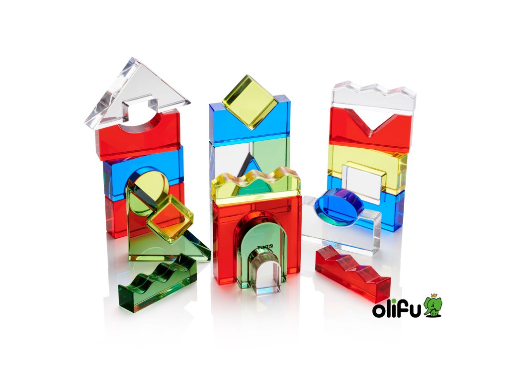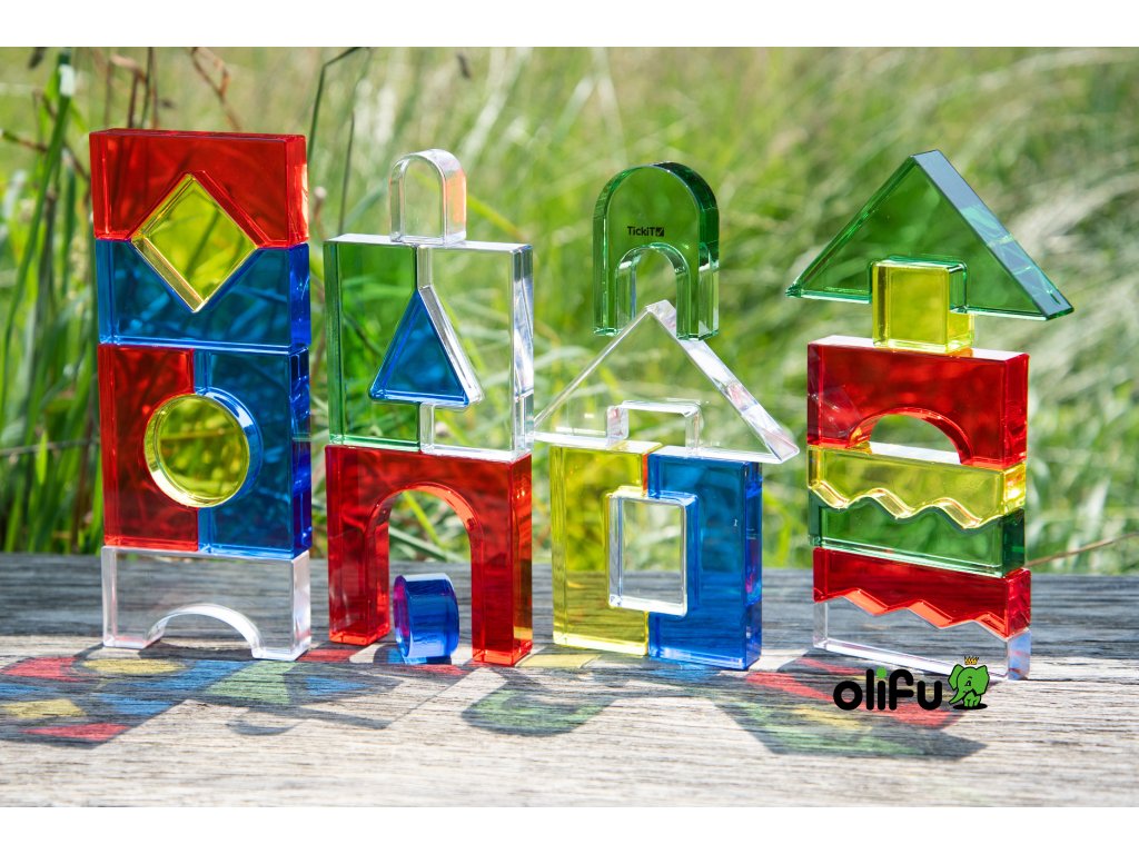 Barevné a průhledné tvary umožňují dětem vidět svět v různých odstínech, vrstvit je, míchat nové barevné kombinace a používat je na světelném boxu.